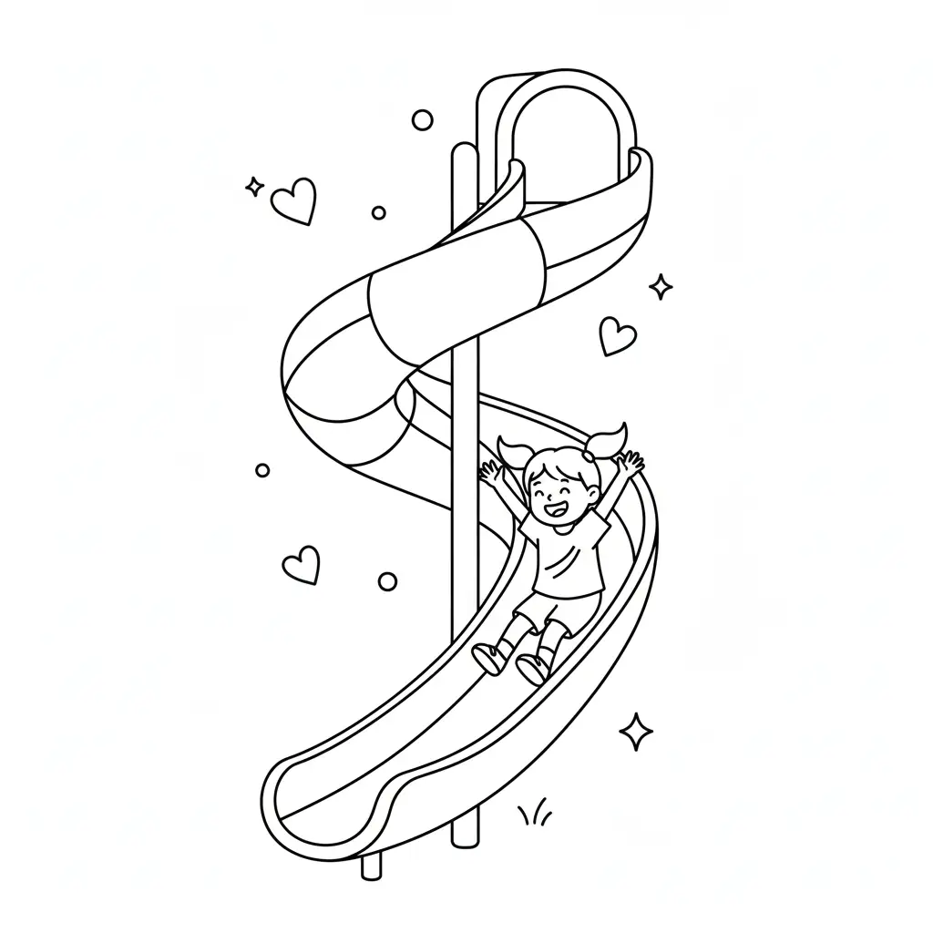 דף צביעה של דף צביעה על מגלשה לילדים בקטגוריה משחקים ופעילויות. מתאים לילדים מגיל 3 ומעלה, להדפסה בחינם עם קווים ברורים וציור ידידותי