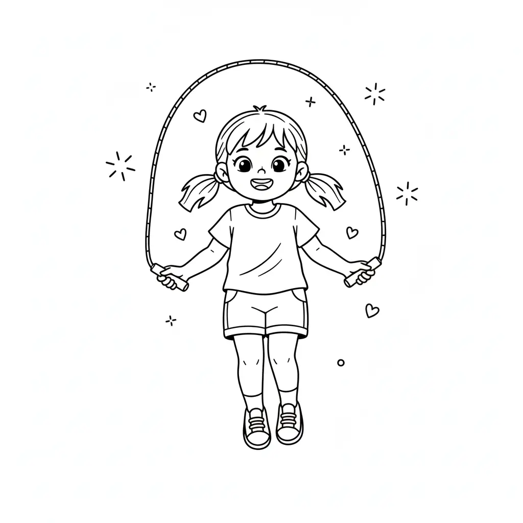דף צביעה של דף צביעה קפיצה בחבל לילדים בקטגוריה משחקים ופעילויות. מתאים לילדים מגיל 3 ומעלה, להדפסה בחינם עם קווים ברורים וציור ידידותי