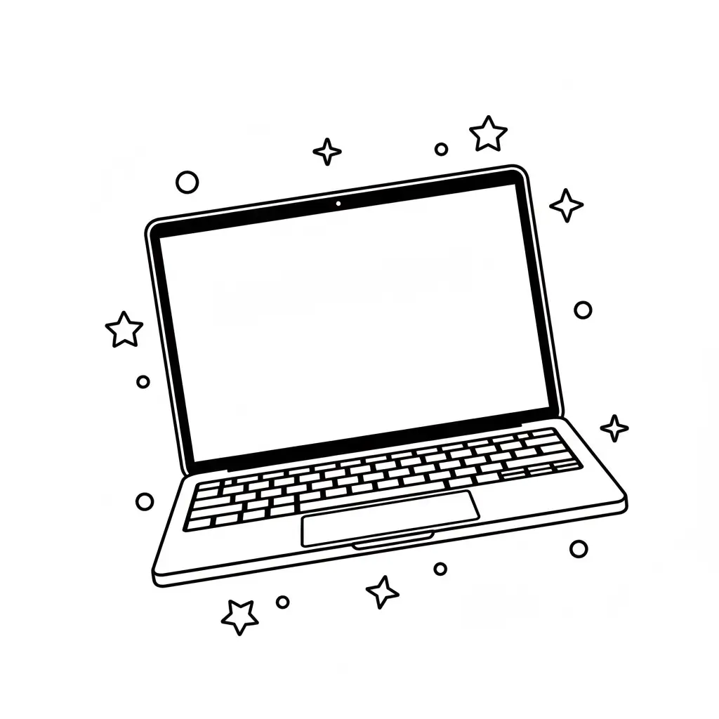 דף צביעה של אייקון מחשב נייד לילדים בקטגוריה אייקונים וסמלים. מתאים לילדים מגיל 3 ומעלה, להדפסה בחינם עם קווים ברורים וציור ידידותי