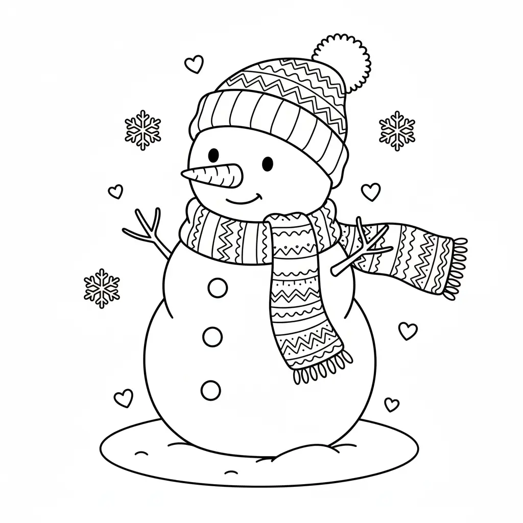 דף צביעה של איש שלג בכריסמס לילדים בקטגוריה כריסמס. מתאים לילדים מגיל 3 ומעלה, להדפסה בחינם עם קווים ברורים וציור ידידותי