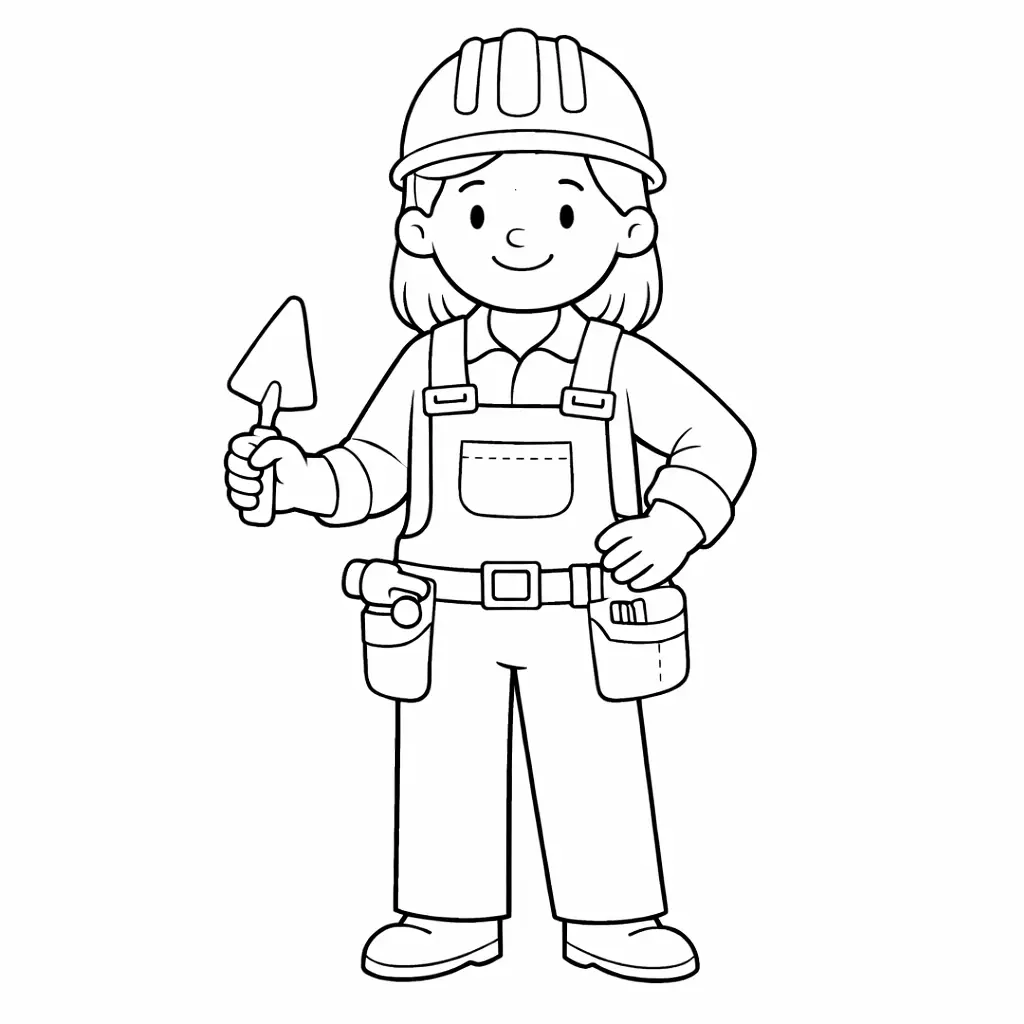 דף צביעה של בנאית לילדים בקטגוריה מקצועות. מתאים לילדים מגיל 3 ומעלה, להדפסה בחינם עם קווים ברורים וציור ידידותי