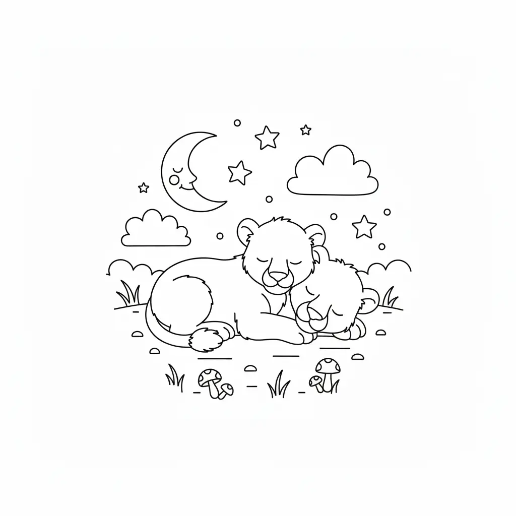 דף צביעה של גורי אריות ישנים יחד לילדים בקטגוריה לילה טוב. מתאים לילדים מגיל 3 ומעלה, להדפסה בחינם עם קווים ברורים וציור ידידותי