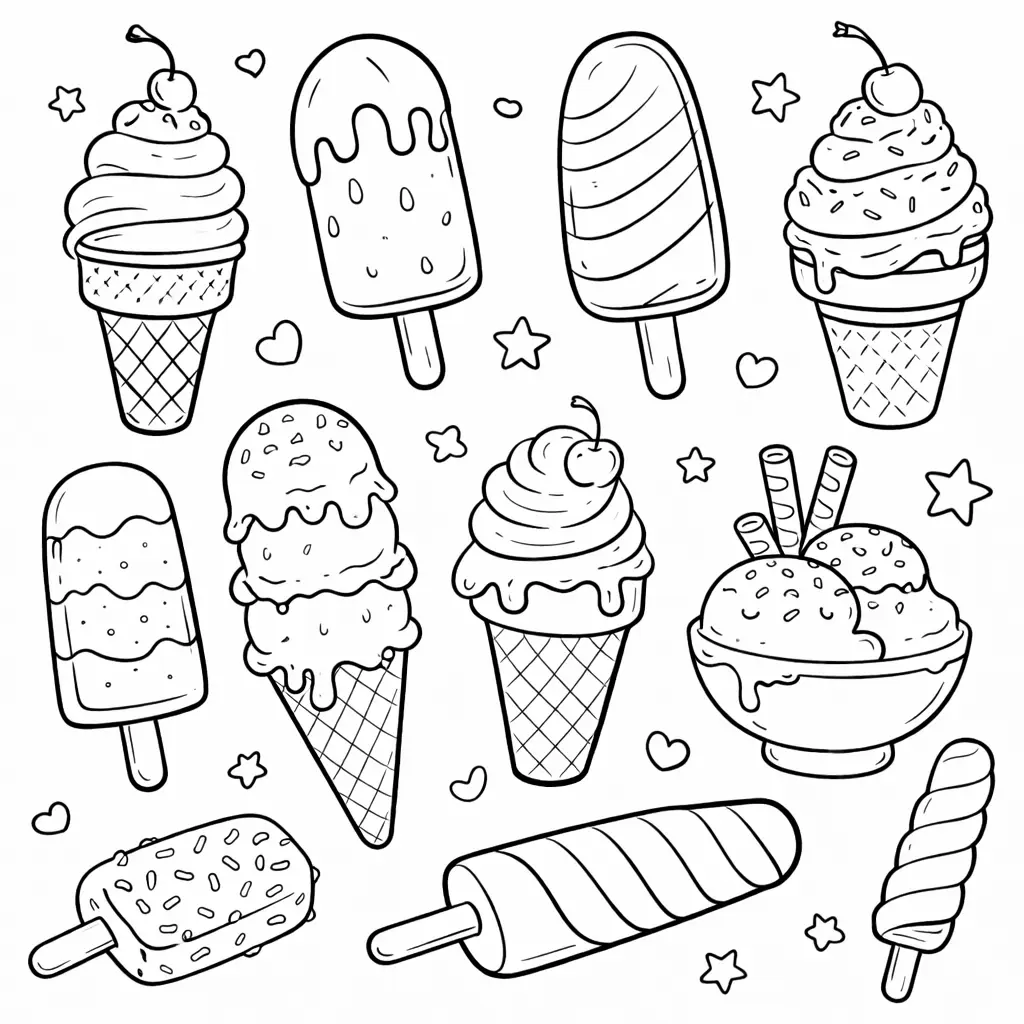 דף צביעה של גלידות בקיץ לילדים בקטגוריה קיץ. מתאים לילדים מגיל 3 ומעלה, להדפסה בחינם עם קווים ברורים וציור ידידותי