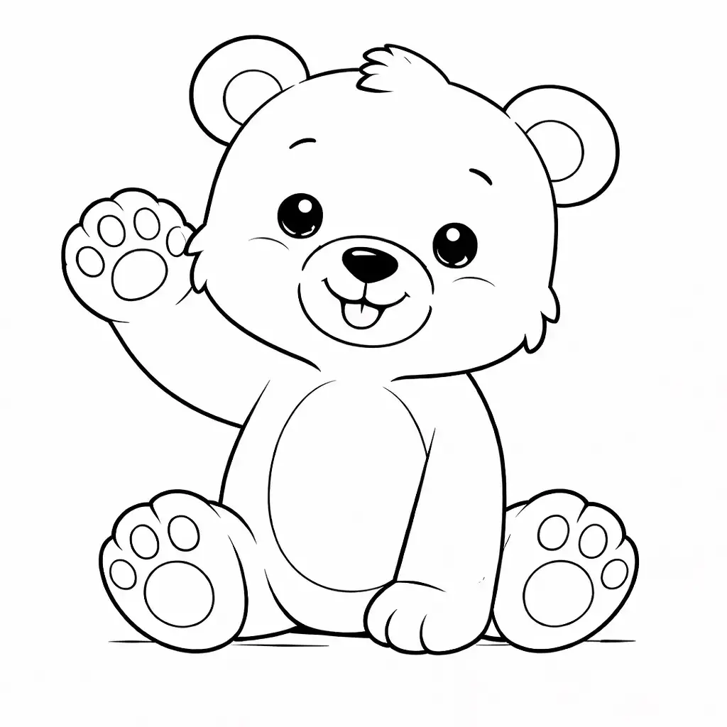 דף צביעה של דוב מנופף לשלום לילדים בקטגוריה דובים. מתאים לילדים מגיל 3 ומעלה, להדפסה בחינם עם קווים ברורים וציור ידידותי