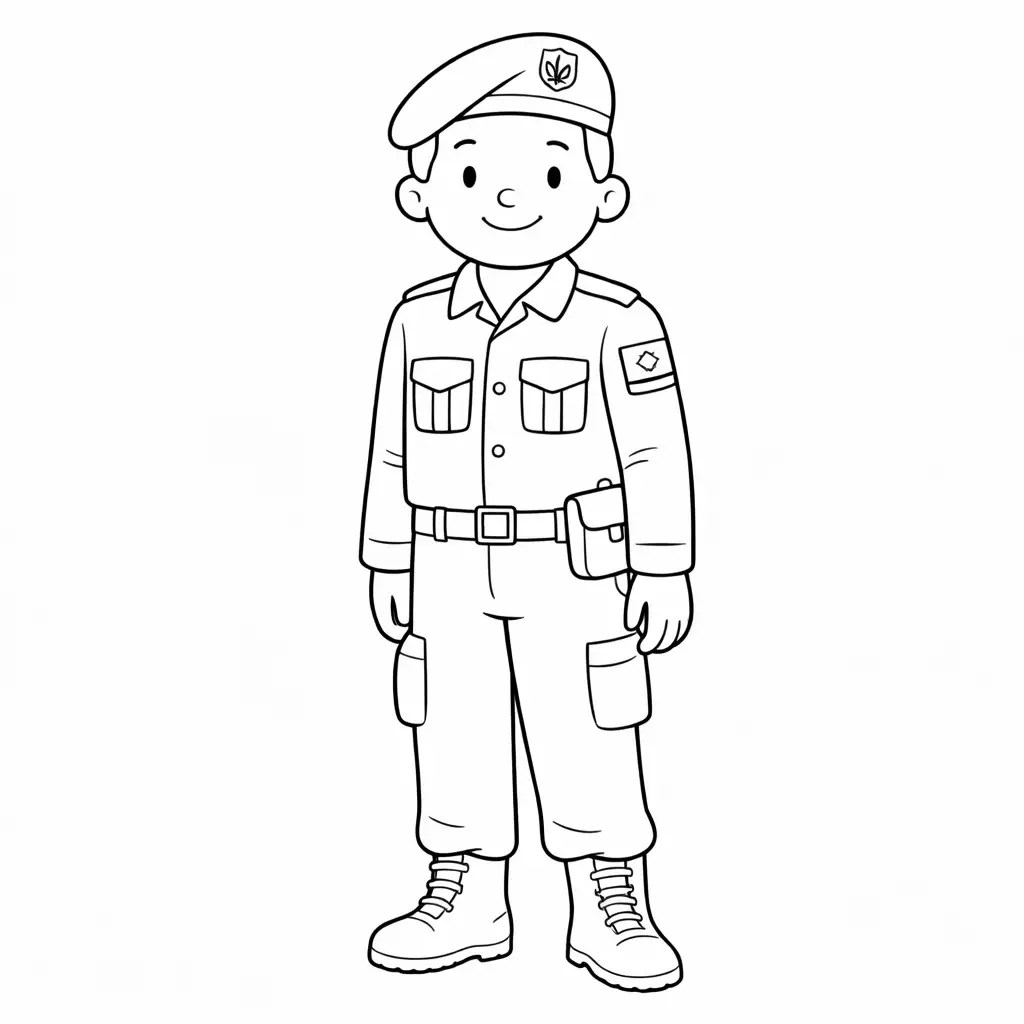 דף צביעה של חייל לילדים בקטגוריה מקצועות. מתאים לילדים מגיל 3 ומעלה, להדפסה בחינם עם קווים ברורים וציור ידידותי