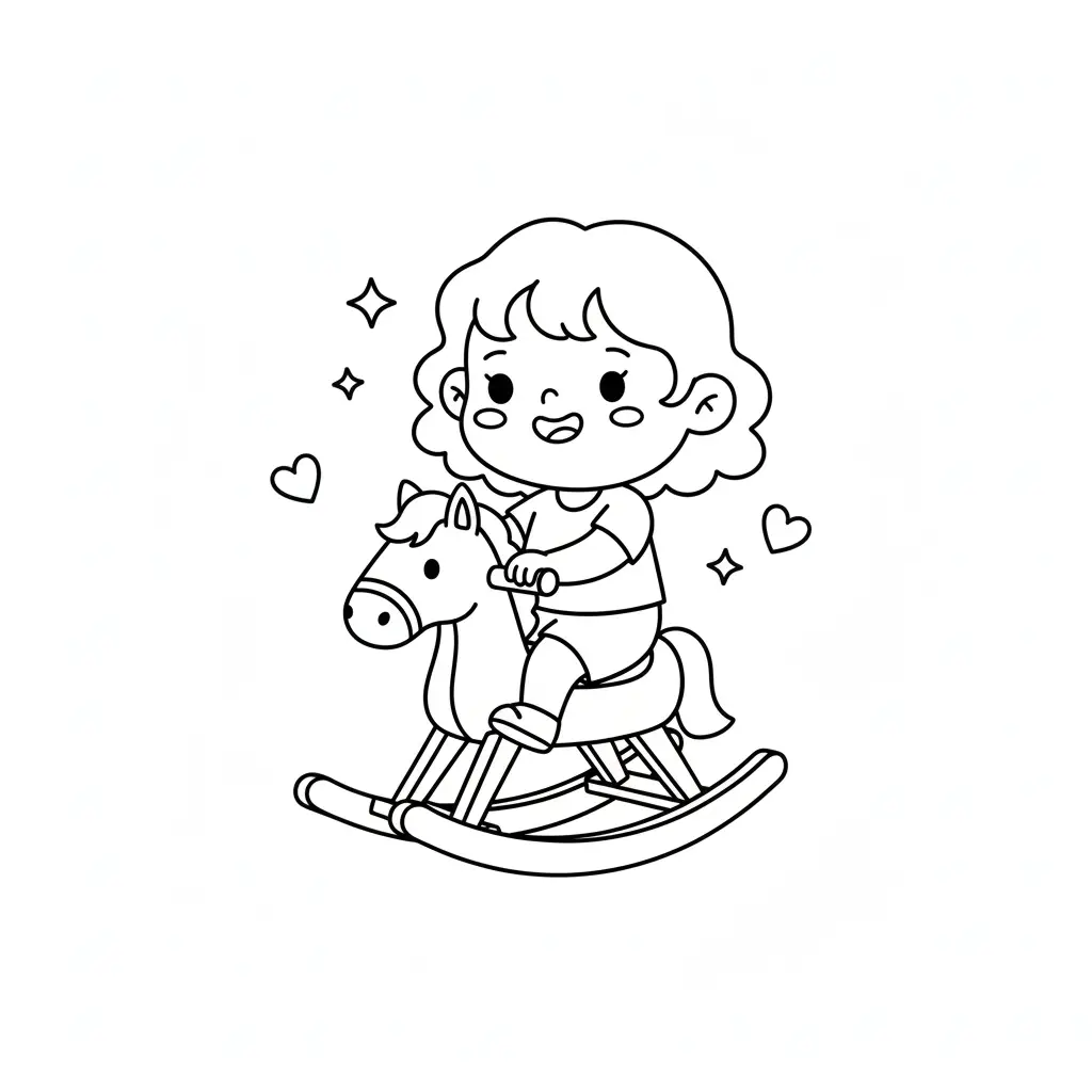 דף צביעה של ילדה על סוס נדנדה לילדים בקטגוריה משחקים ופעילויות. מתאים לילדים מגיל 3 ומעלה, להדפסה בחינם עם קווים ברורים וציור ידידותי