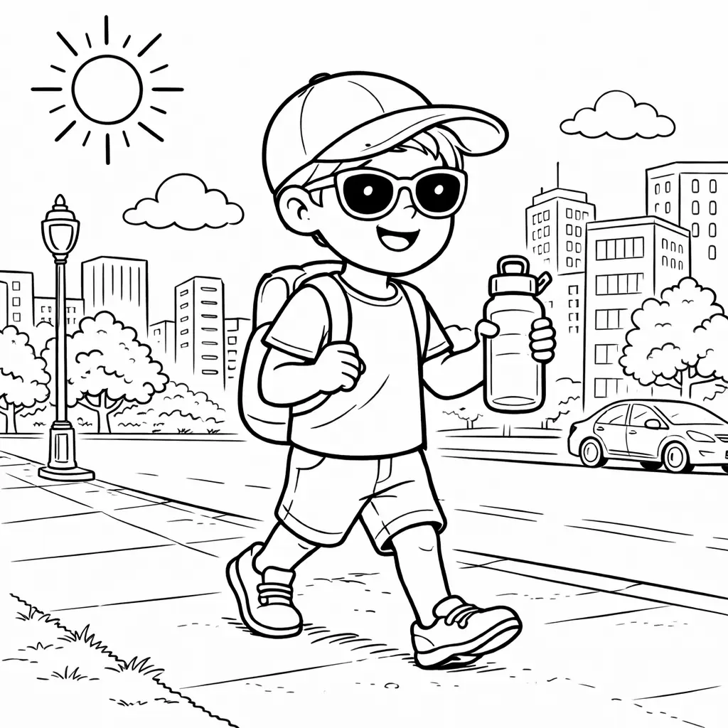 דף צביעה של ילד בקיץ לילדים בקטגוריה קיץ. מתאים לילדים מגיל 3 ומעלה, להדפסה בחינם עם קווים ברורים וציור ידידותי