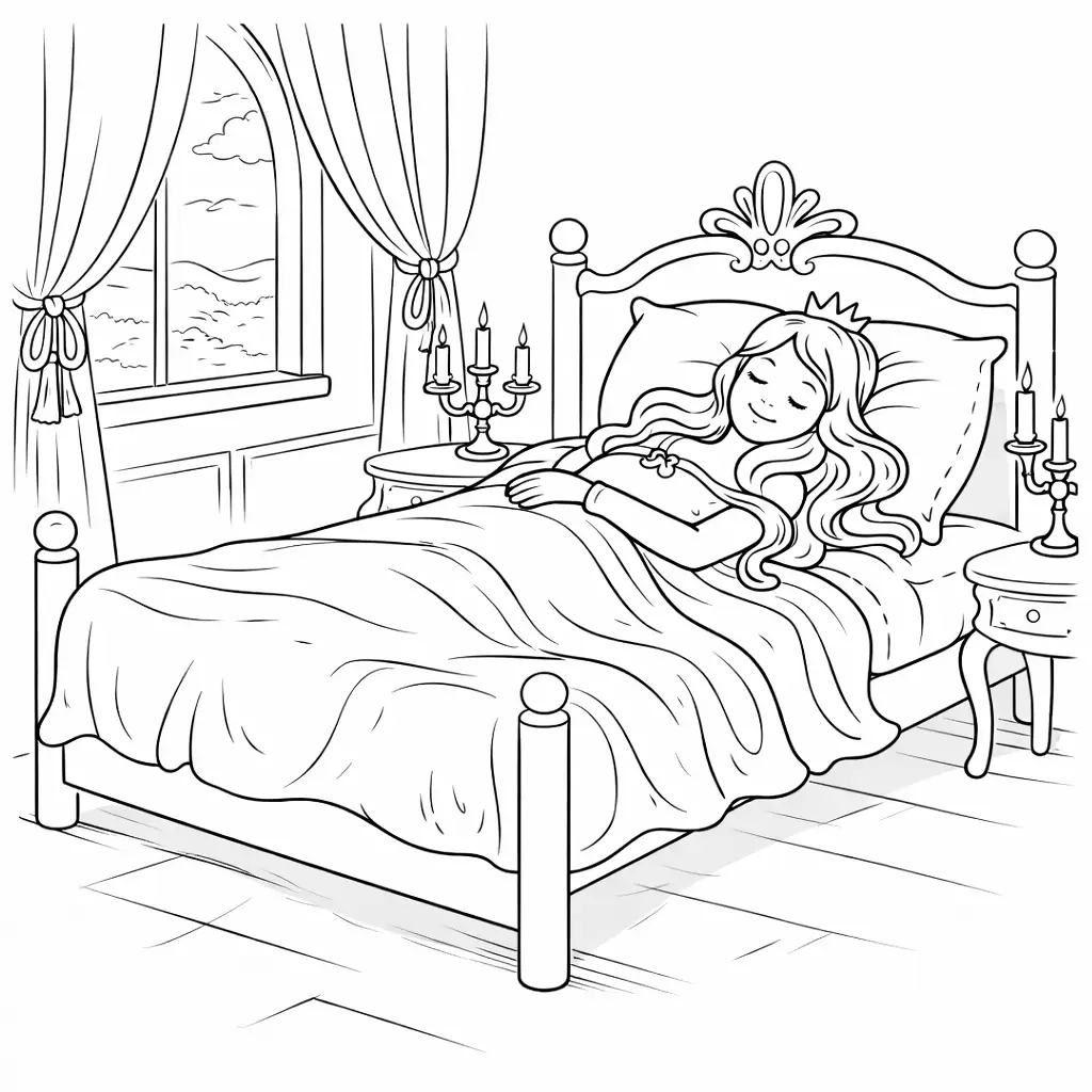 דף צביעה של יפיפייה לילדים בקטגוריה אגדות. מתאים לילדים מגיל 3 ומעלה, להדפסה בחינם עם קווים ברורים וציור ידידותי