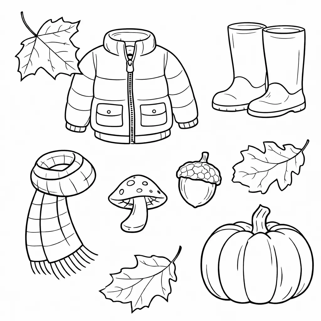 דף צביעה של מאפייני סתיו לילדים בקטגוריה סתיו. מתאים לילדים מגיל 3 ומעלה, להדפסה בחינם עם קווים ברורים וציור ידידותי