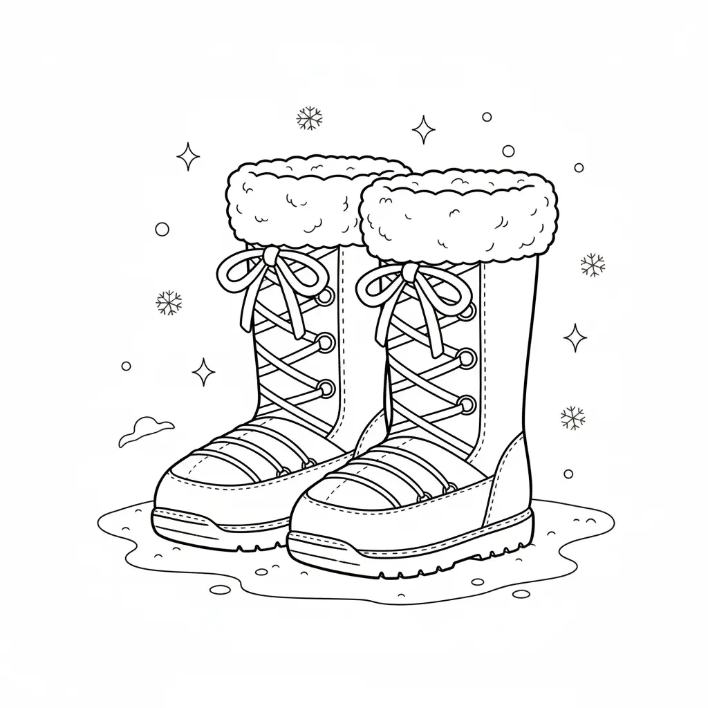 דף צביעה של מגפיים לשלג בכריסמס לילדים בקטגוריה כריסמס. מתאים לילדים מגיל 3 ומעלה, להדפסה בחינם עם קווים ברורים וציור ידידותי