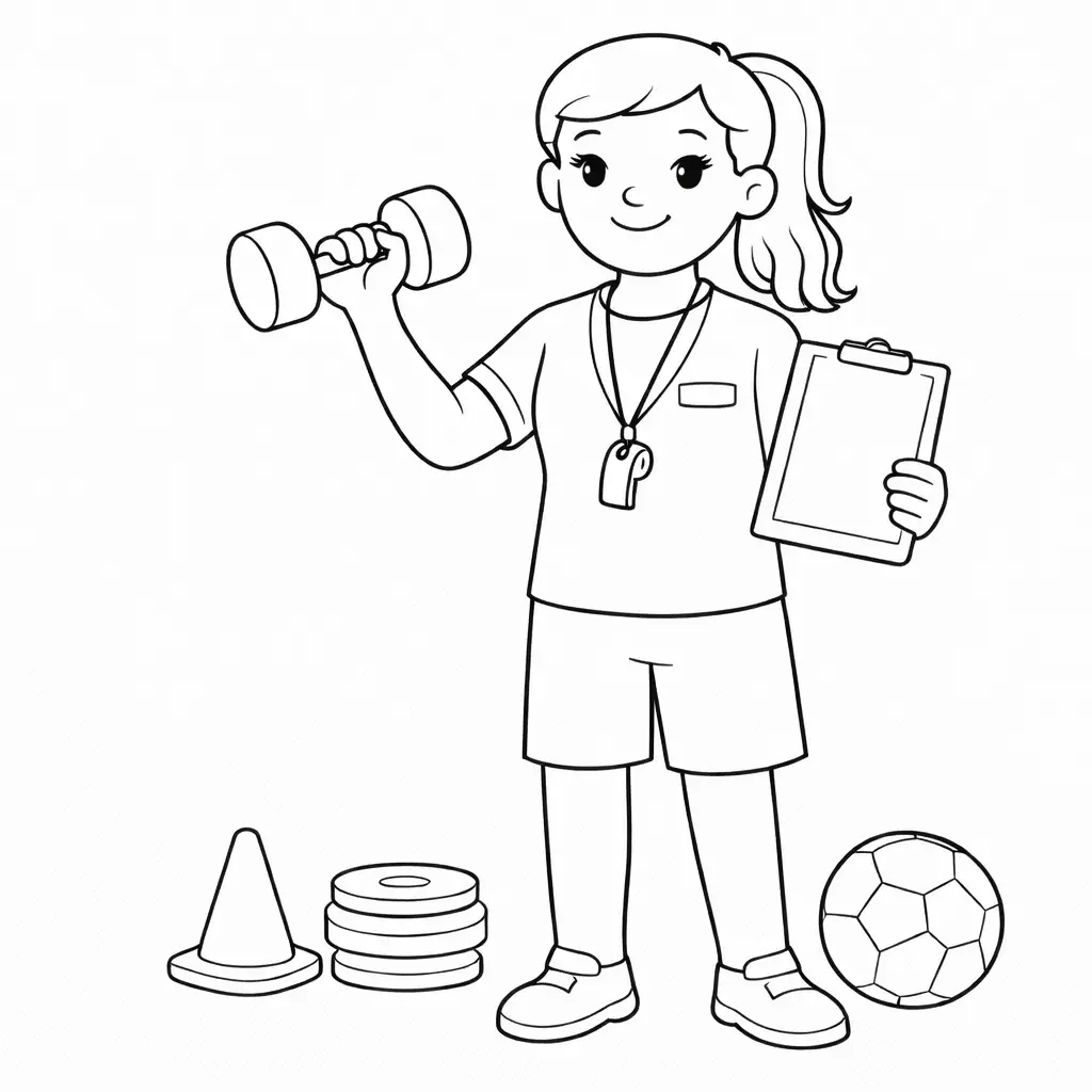 דף צביעה של מדריכת ספורט לילדים בקטגוריה מקצועות. מתאים לילדים מגיל 3 ומעלה, להדפסה בחינם עם קווים ברורים וציור ידידותי