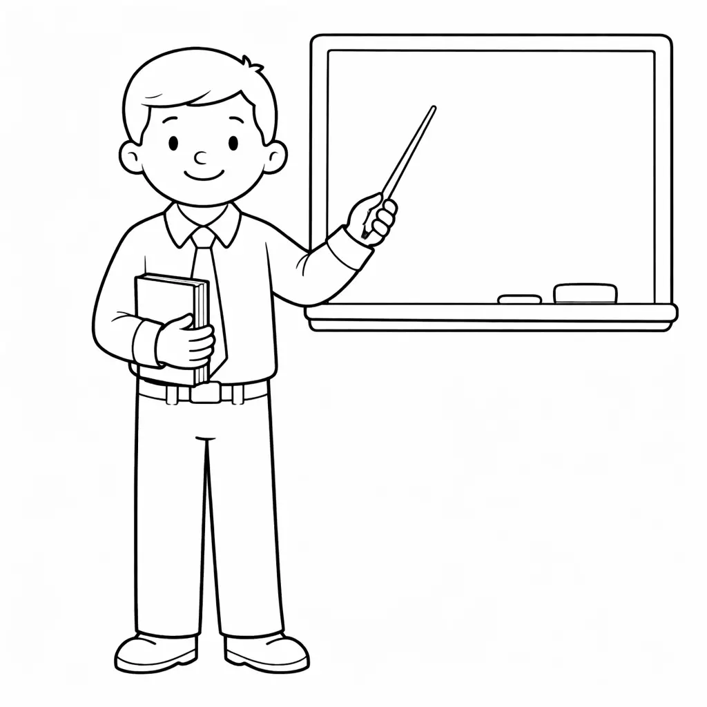 דף צביעה של מורה לילדים בקטגוריה מקצועות. מתאים לילדים מגיל 3 ומעלה, להדפסה בחינם עם קווים ברורים וציור ידידותי