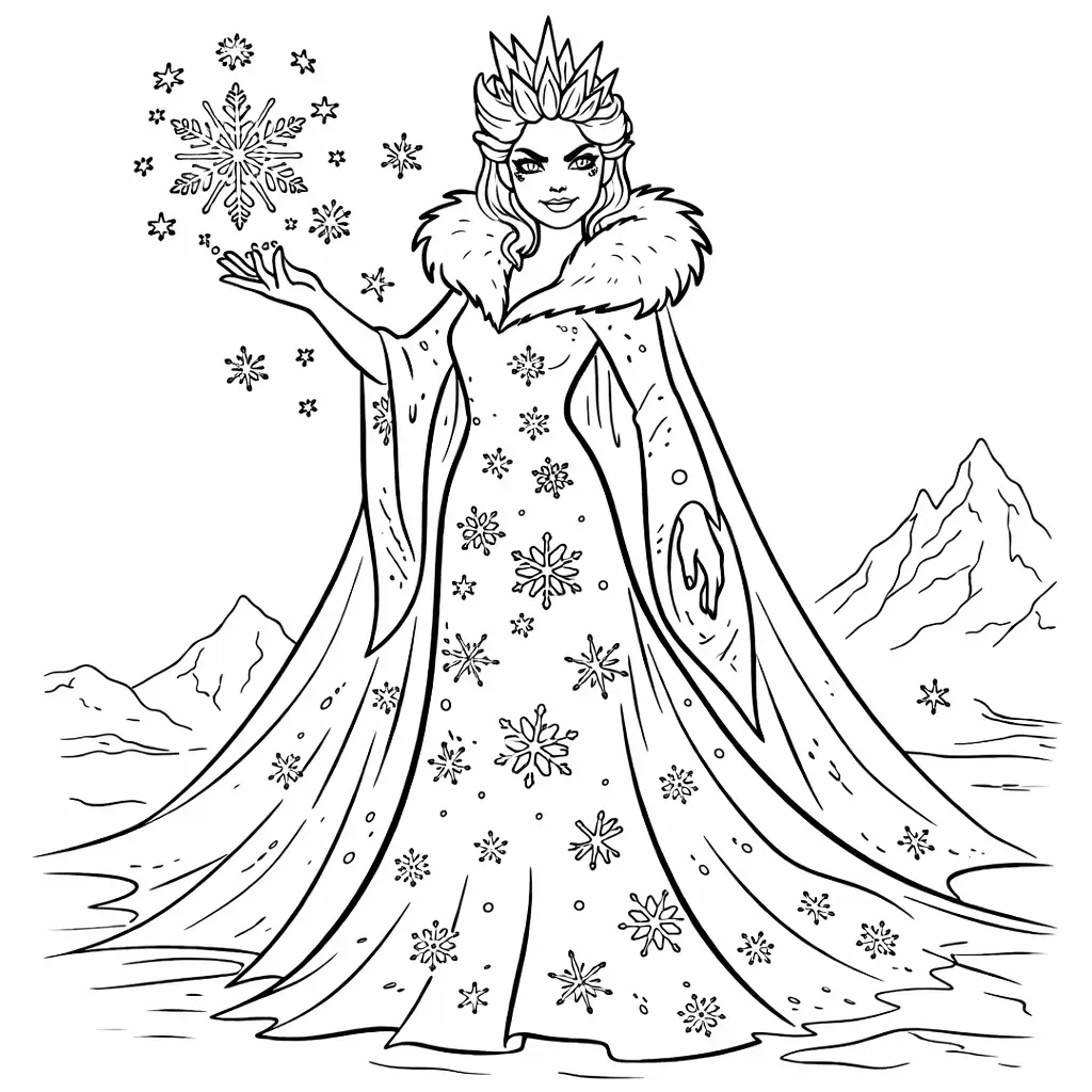 דף צביעה של מלכת הקרח לילדים בקטגוריה אגדות. מתאים לילדים מגיל 3 ומעלה, להדפסה בחינם עם קווים ברורים וציור ידידותי