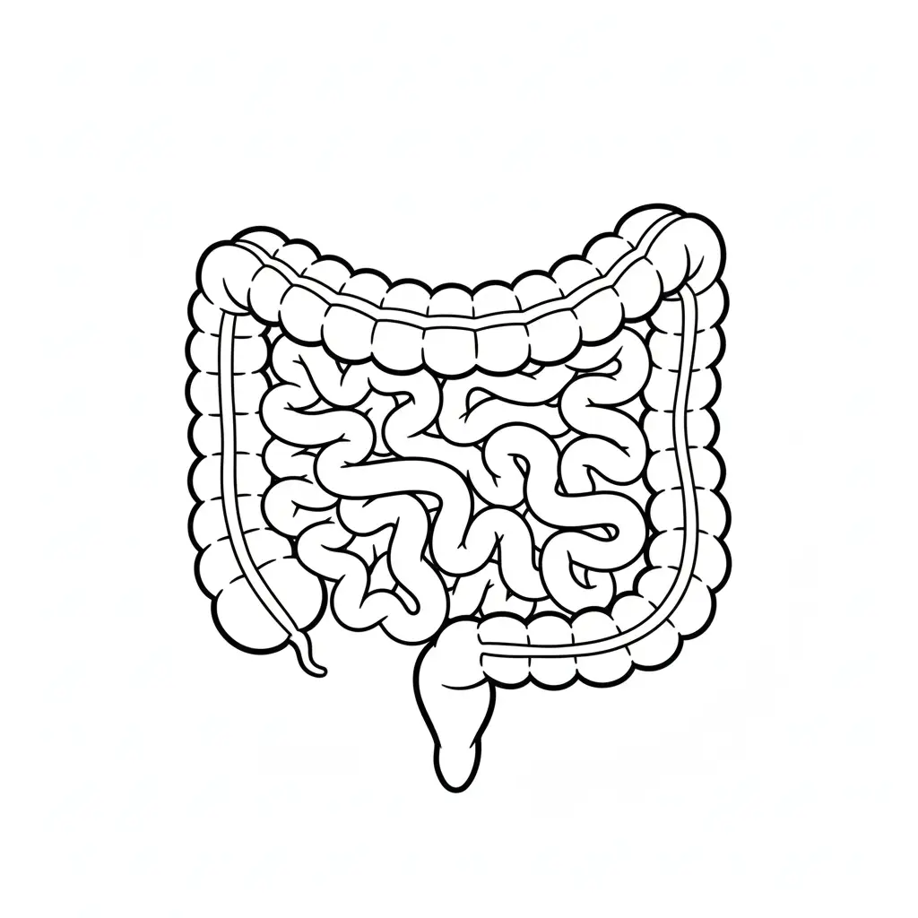 דף צביעה של מעיים לילדים בקטגוריה גוף האדם. מתאים לילדים מגיל 3 ומעלה, להדפסה בחינם עם קווים ברורים וציור ידידותי