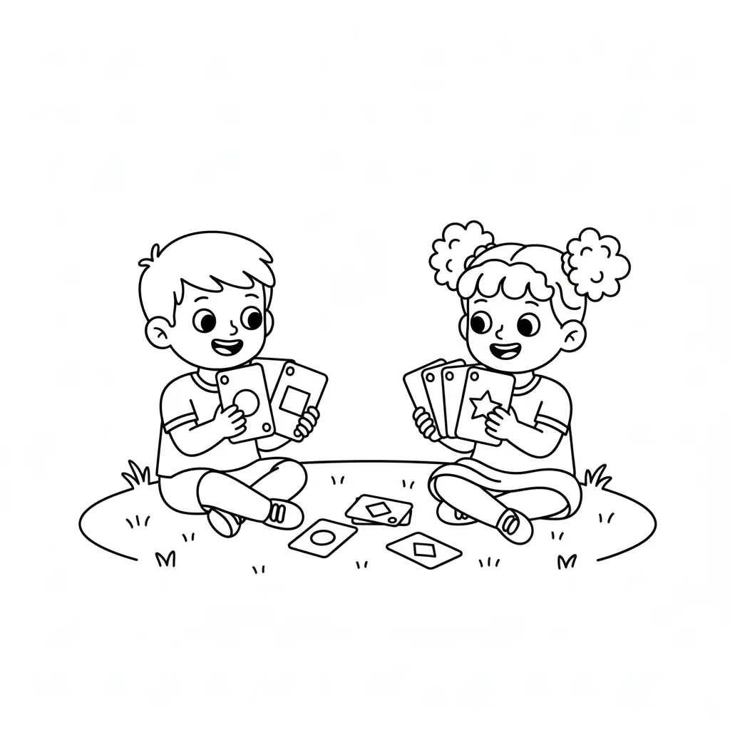דף צביעה של משחק קלפים לילדים בקטגוריה משחקים ופעילויות. מתאים לילדים מגיל 3 ומעלה, להדפסה בחינם עם קווים ברורים וציור ידידותי