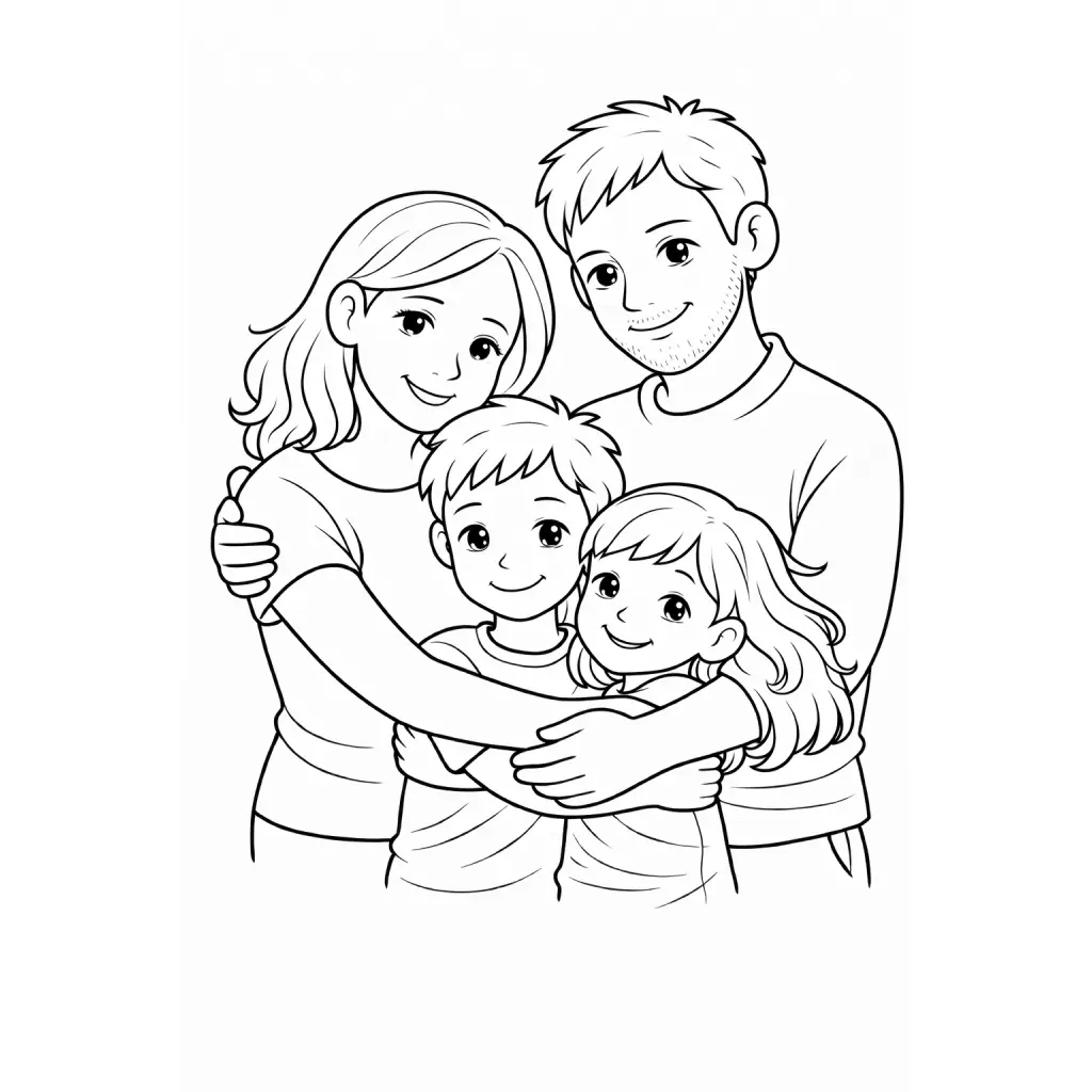 דף צביעה של משפחה מחובקת
