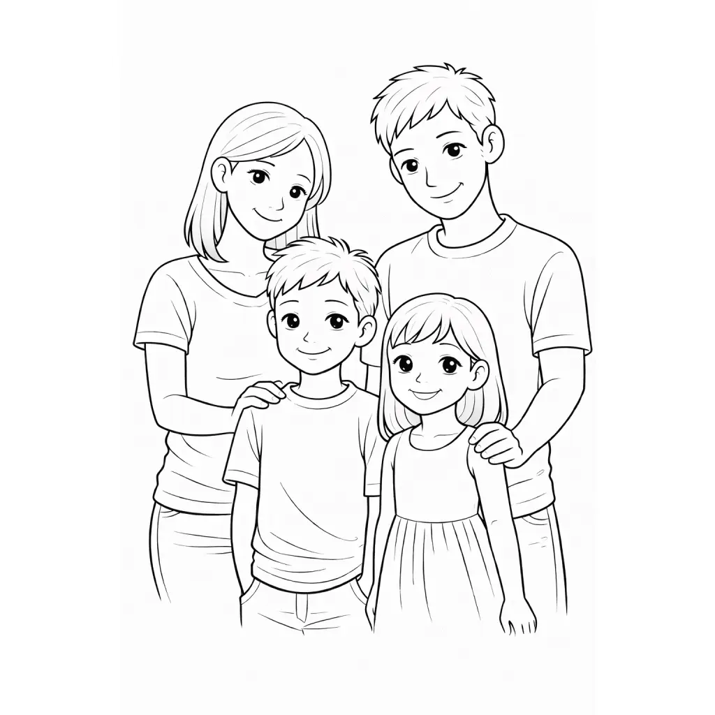 דף צביעה של משפחה של הורים ואחים