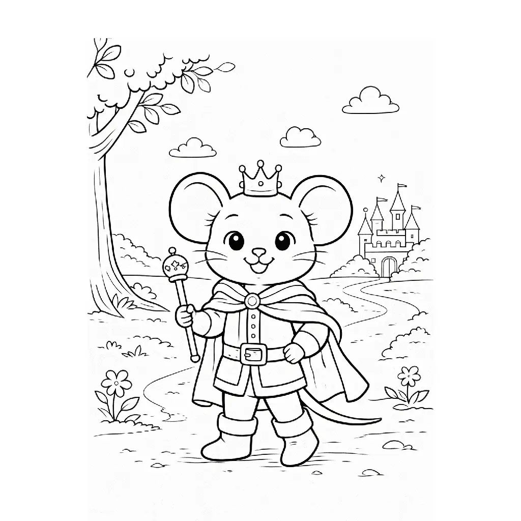 דף צביעה של נסיך עכבר לילדים בקטגוריה אגדות. מתאים לילדים מגיל 3 ומעלה, להדפסה בחינם עם קווים ברורים וציור ידידותי