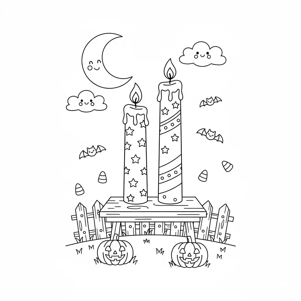 דף צביעה של נרות האלווין לילדים בקטגוריה האלווין. מתאים לילדים מגיל 3 ומעלה, להדפסה בחינם עם קווים ברורים וציור ידידותי