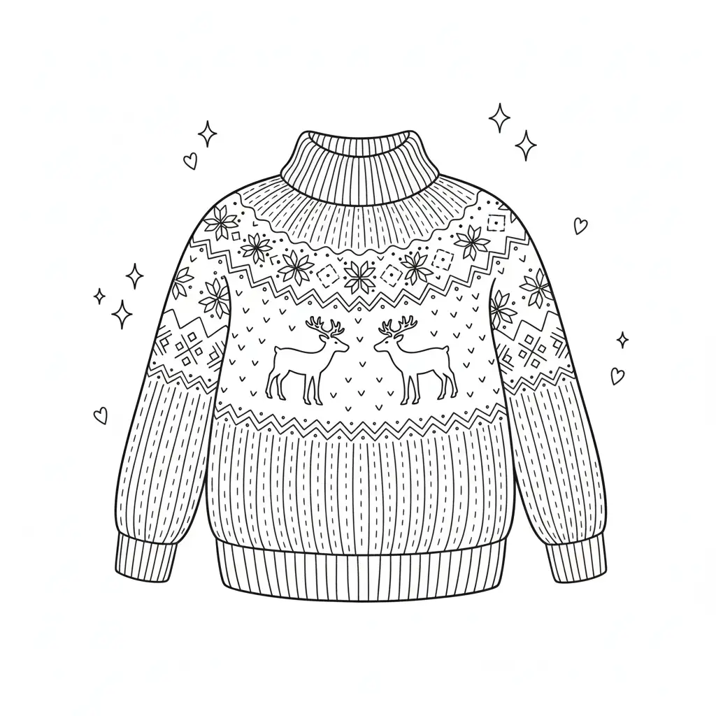 דף צביעה של סוודר כריסמס לילדים בקטגוריה כריסמס. מתאים לילדים מגיל 3 ומעלה, להדפסה בחינם עם קווים ברורים וציור ידידותי
