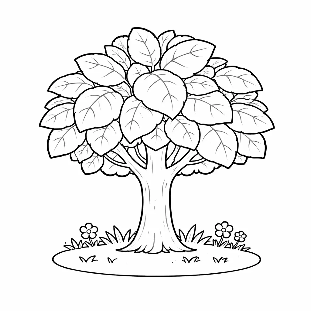 דף צביעה של עץ עם עלים גדולים לילדים בקטגוריה טבע. מתאים לילדים מגיל 3 ומעלה, להדפסה בחינם עם קווים ברורים וציור ידידותי
