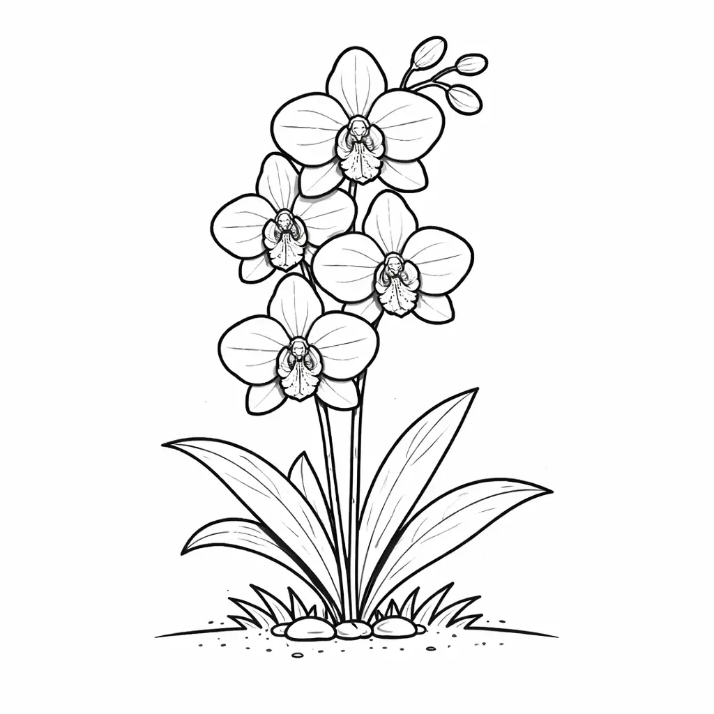דף צביעה של פרחי סחלב לילדים בקטגוריה טבע. מתאים לילדים מגיל 3 ומעלה, להדפסה בחינם עם קווים ברורים וציור ידידותי