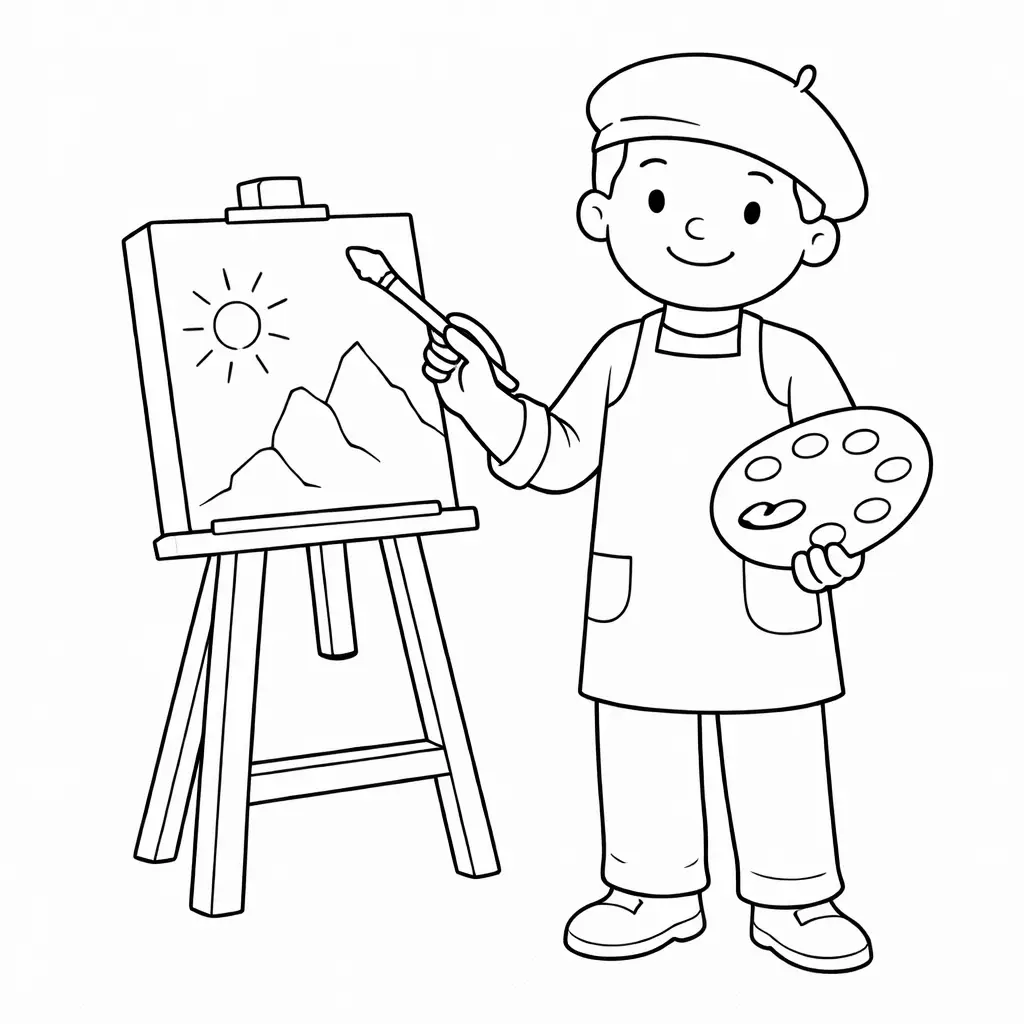 דף צביעה של צייר לילדים בקטגוריה מקצועות. מתאים לילדים מגיל 3 ומעלה, להדפסה בחינם עם קווים ברורים וציור ידידותי