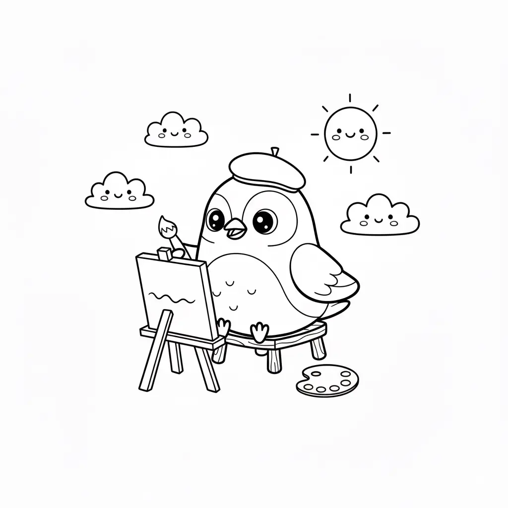 דף צביעה של ציפור מציירת לילדים בקטגוריה ציפורים. מתאים לילדים מגיל 3 ומעלה, להדפסה בחינם עם קווים ברורים וציור ידידותי