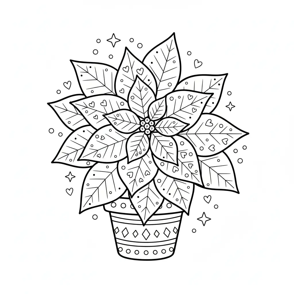 דף צביעה של צמח כוכב חג כריסמס לילדים בקטגוריה כריסמס. מתאים לילדים מגיל 3 ומעלה, להדפסה בחינם עם קווים ברורים וציור ידידותי