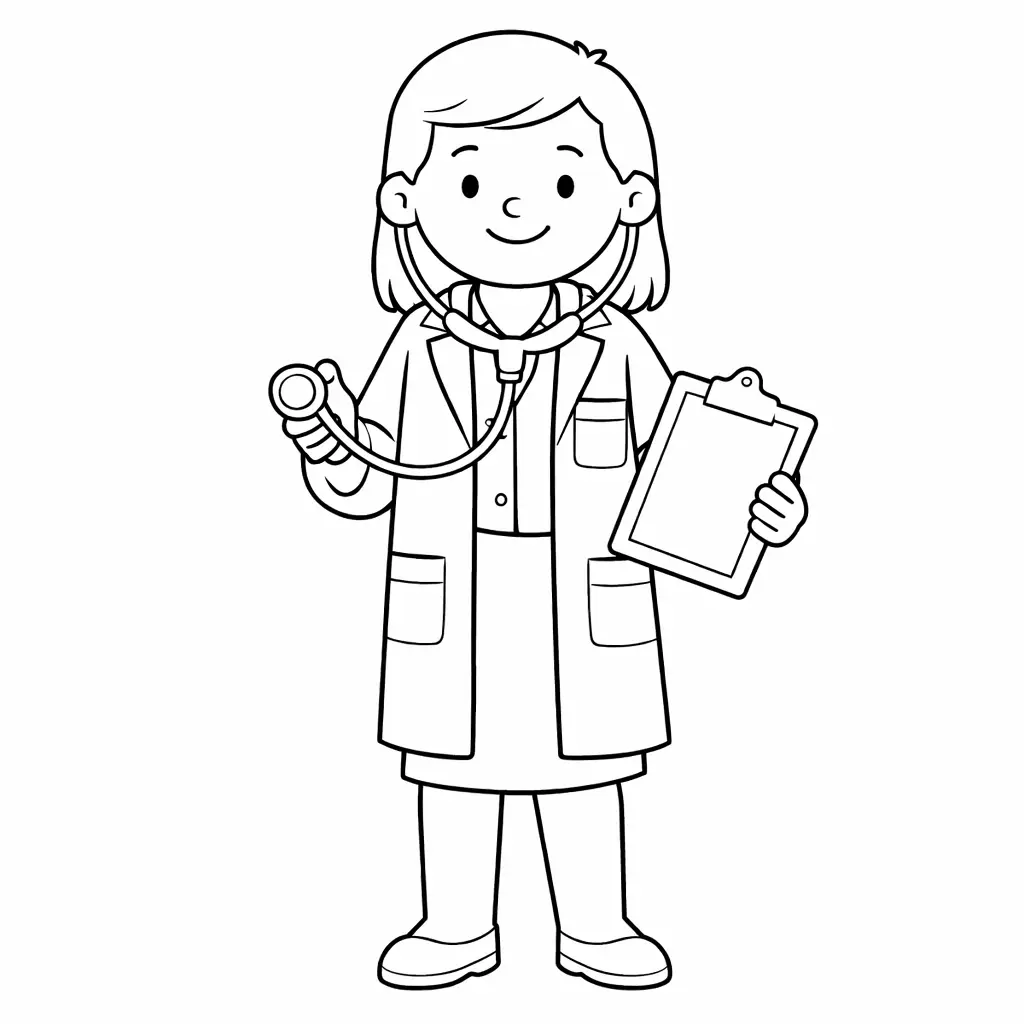 דף צביעה של רופאה לילדים בקטגוריה מקצועות. מתאים לילדים מגיל 3 ומעלה, להדפסה בחינם עם קווים ברורים וציור ידידותי
