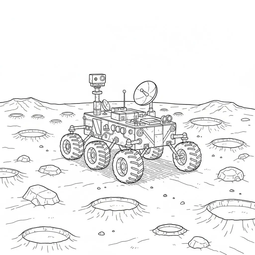 דף צביעה של רכב חלל לילדים בקטגוריה חלל וכוכבים. מתאים לילדים מגיל 3 ומעלה, להדפסה בחינם עם קווים ברורים וציור ידידותי