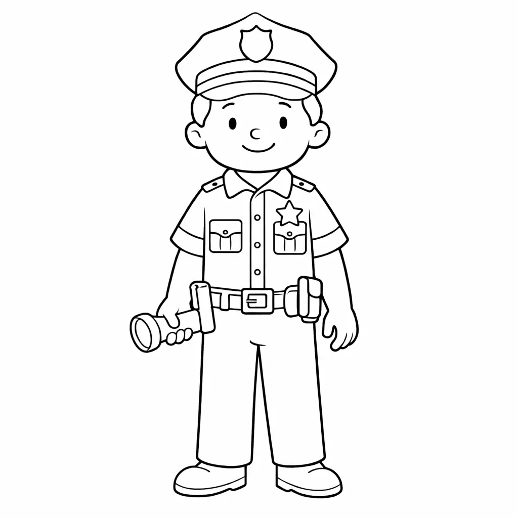 דף צביעה של שוטר לילדים בקטגוריה מקצועות. מתאים לילדים מגיל 3 ומעלה, להדפסה בחינם עם קווים ברורים וציור ידידותי