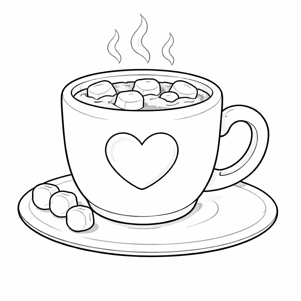 דף צביעה של שוקו חם בחורף לילדים בקטגוריה חורף. מתאים לילדים מגיל 3 ומעלה, להדפסה בחינם עם קווים ברורים וציור ידידותי