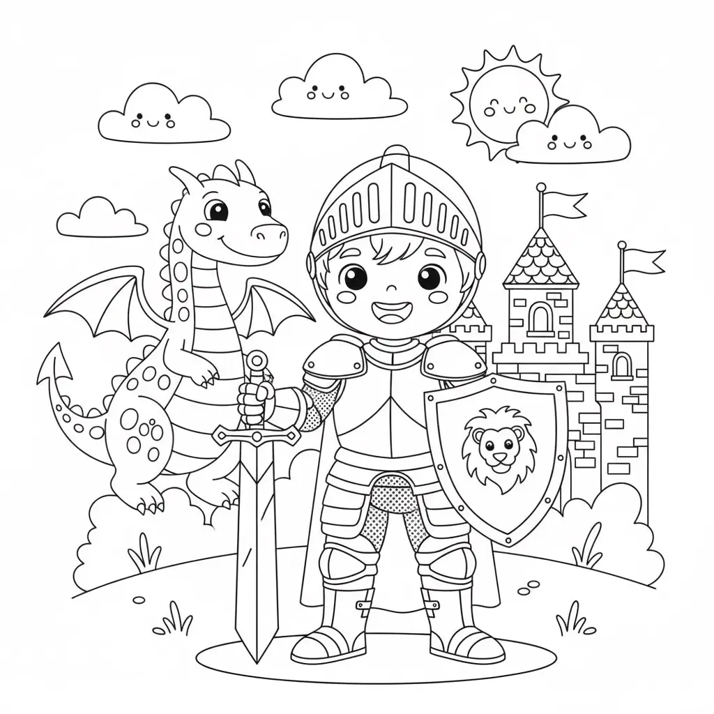 דף צביעה של תחפושת אביר