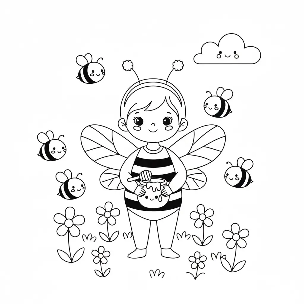 דף צביעה של תחפושת דבורה להדפסה