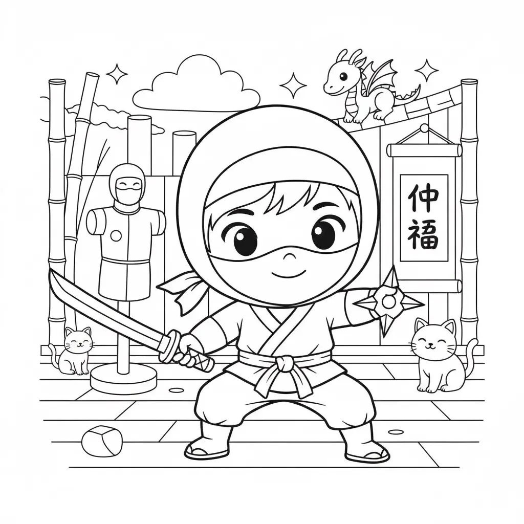 דף צביעה של תחפושת סמוראי לילדים בקטגוריה תחפושות. מתאים לילדים מגיל 3 ומעלה, להדפסה בחינם עם קווים ברורים וציור ידידותי