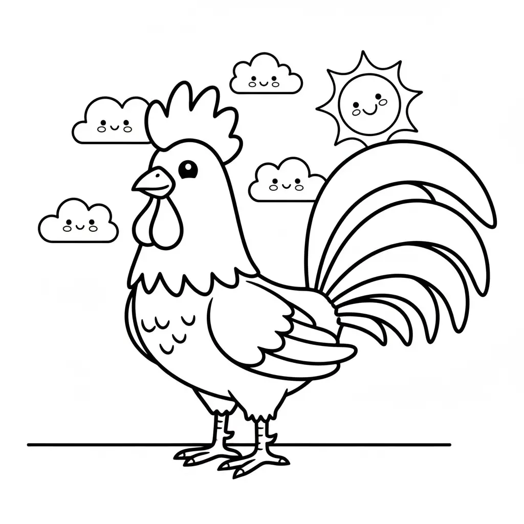 דף צביעה של תרנגול לילדים בקטגוריה ציפורים. מתאים לילדים מגיל 3 ומעלה, להדפסה בחינם עם קווים ברורים וציור ידידותי